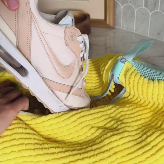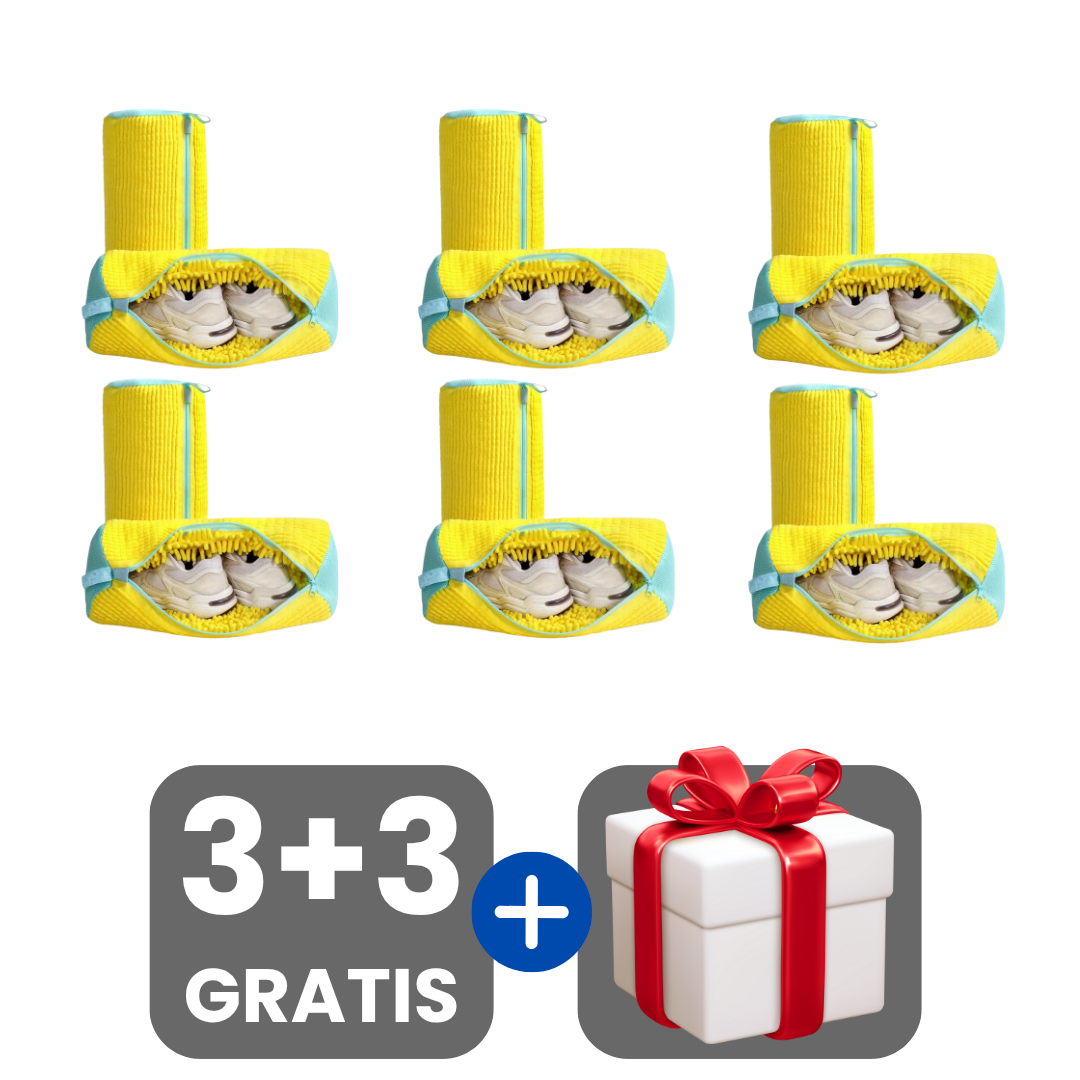Da! Sacul este ideal pentru sneakers, pantofi sport, adidași și chiar încălțăminte pentru copii. Evită doar pantofii din piele naturală.
